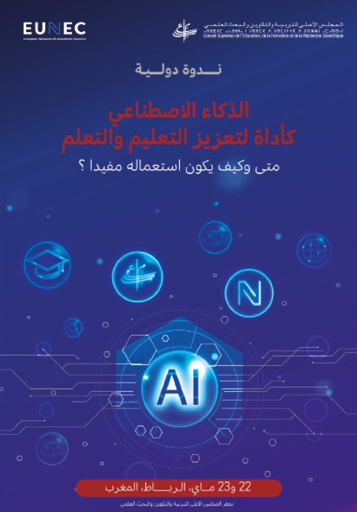يُنظم المجلس الأعلى للتربية والتكوين والبحث العلمي، بشراكة مع الشبكة الأوروبية لمجالس التربية EUNEC””، ندوة دولية حول “الذكاء الاصطناعي كأداة لتحسين التعليم والتعلم: متى وكيف يكون استعماله مفيدًا؟”، وذلك يومي 22 و23 ماي 2024، ابتداءً من الساعة التاسعة صباحاً، بمقر المجلس الكائن بملتقى شارع علال الفاسي وشارع عبد الكريم الخطيب (الميليا سابقاً) -حي الرياض- الرباط.