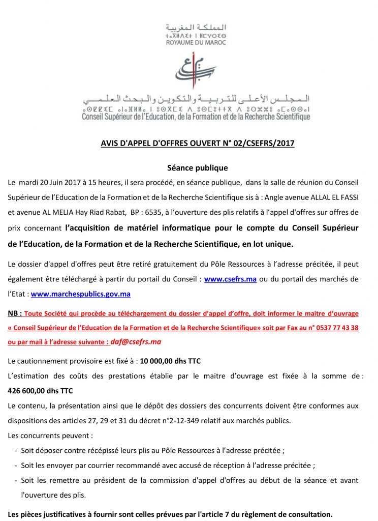 | Référence : 02/CSEFRS/2017 | Date limite : 20/06/2017 15:00 |