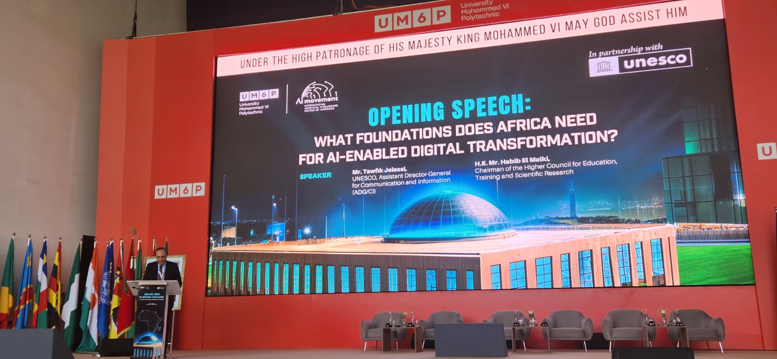 Il me fait plaisir de me retrouver parmi vous aujourd’hui à la cérémonie d’ouverture de ce Forum de Haut Niveau sur la thématique de « l’intelligence artificielle, levier de développement en Afrique », organisé par l’Université Mohamed VI Polytechnique en partenariat avec l’UNESCO.