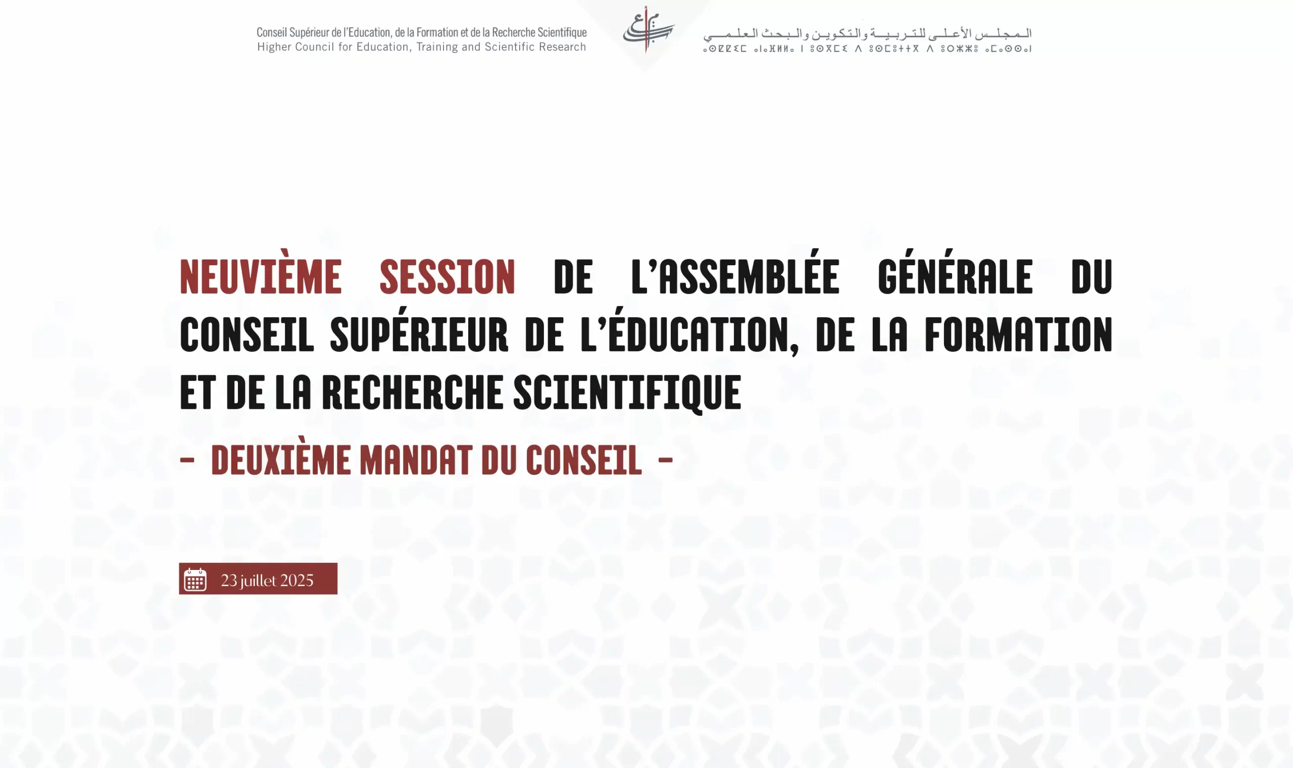 Résultats des travaux de la 9ème session du second mandat du Conseil Supérieur de l’Éducation, de la Formation et de la Recherche Scientifique 2025-07-25 Juil252025