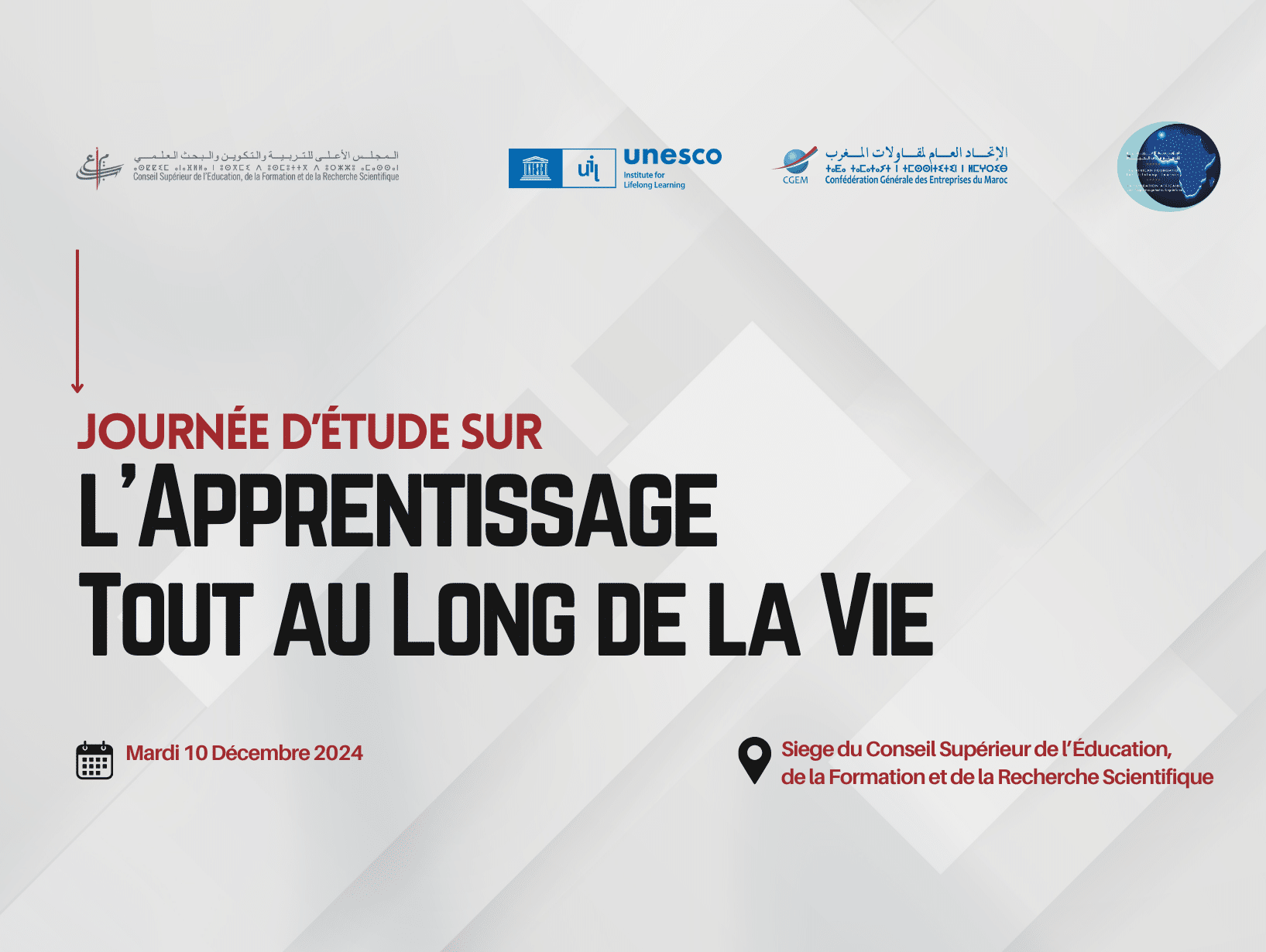 Le Conseil Supérieur de l’Éducation, de la Formation et de la Recherche Scientifique organise une journée d’étude sur l’Apprentissage Tout au Long de la Vie (ATLV) en collaboration avec plusieurs organismes nationaux et internationaux 2024-12-08 Déc82024