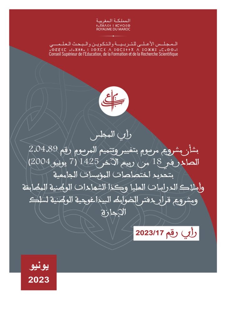 Avis du Conseil sur le projet de décret fixant la vocation des établissements universitaires, les cycles des études supérieures ainsi que les diplômes nationaux correspondants et le projet d’arrêté approuvant le Cahier des normes pédagogiques nationales du cycle de la licence