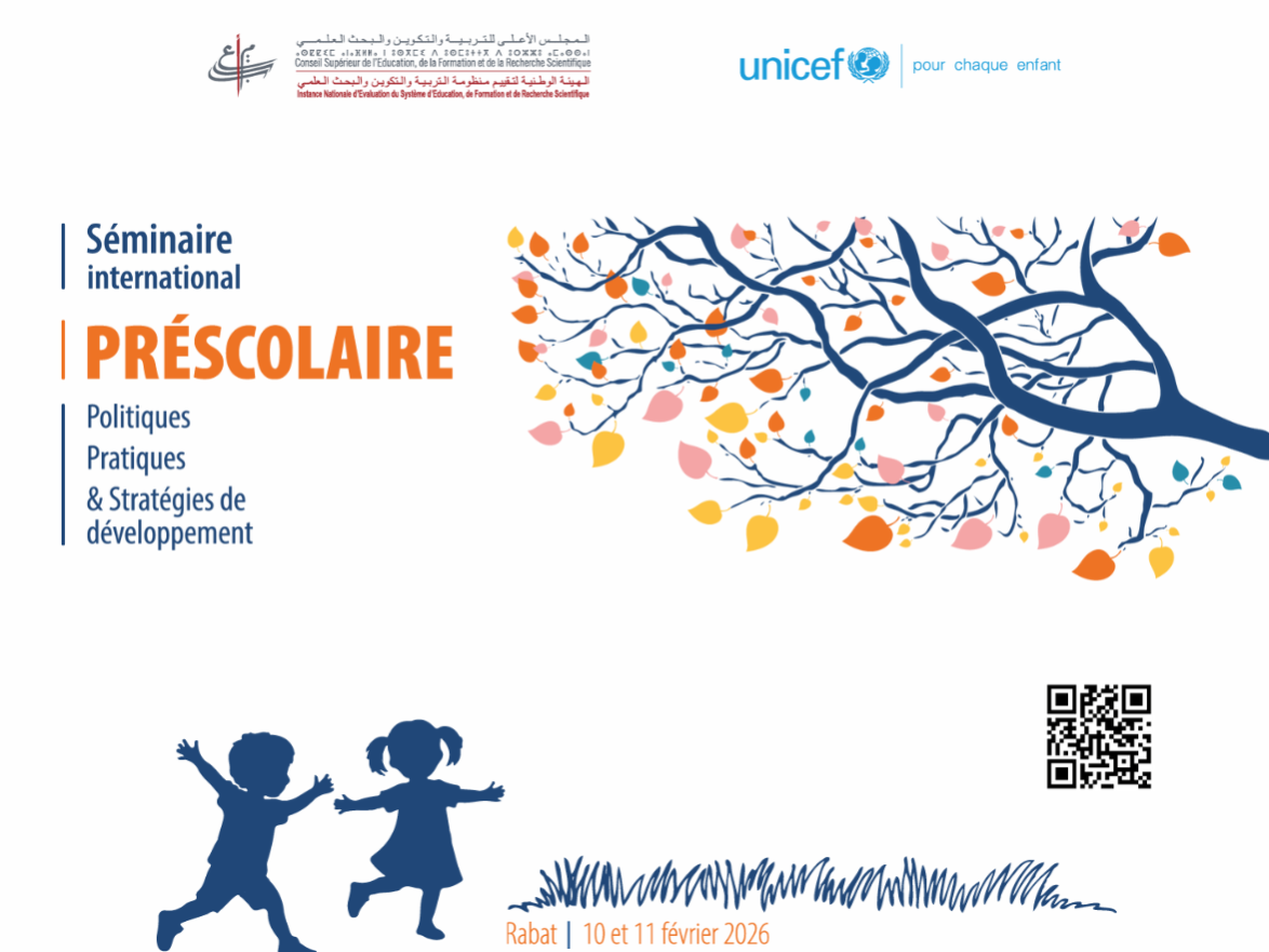 Le séminaire international « Préscolaire : politiques, pratiques et stratégies de développement », organisé les 10 et 11 février 2026 par l’Instance Nationale de l’Évaluation auprès du Conseil Supérieur de l’Éducation, de la Formation et de la Recherche Scientifique (CSEFRS), en partenariat avec l’UNICEF constituera un moment de réflexion clé pour soutenir ce processus.