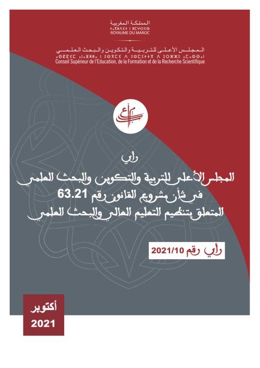 يتوخى المجلس من خلال هذا الرأي الإسهام بمجموعة من الاقتراحات في إغناء أحكام مشروع القانون رقم 63.21 المتعلق بتنظيم التعليم العالي والبحث العلمي وتدقيقها، وتعزيز استجابتها لمستلزمات الإصلاح ومرجعياته، ضمن المنظور الشمولي الذي يؤطر الإصلاح الجاري، وبفلسفة مُؤدّاها إحداث تغيير ملموس يوازي، من حيث درجته ومداه، التحولات المحيطة بالجامعة المغربية، سواء منها التحولات الوطنية أو التحولات الإقليمية والدولية.